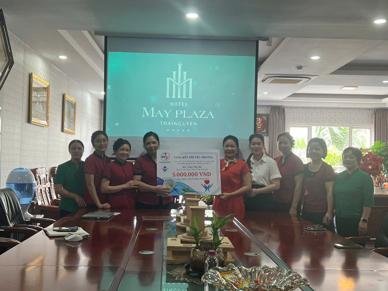 Đại diện BTC trao phần quà cho Trần Thị Hà – Khách sạn May Plaza Thái Nguyên