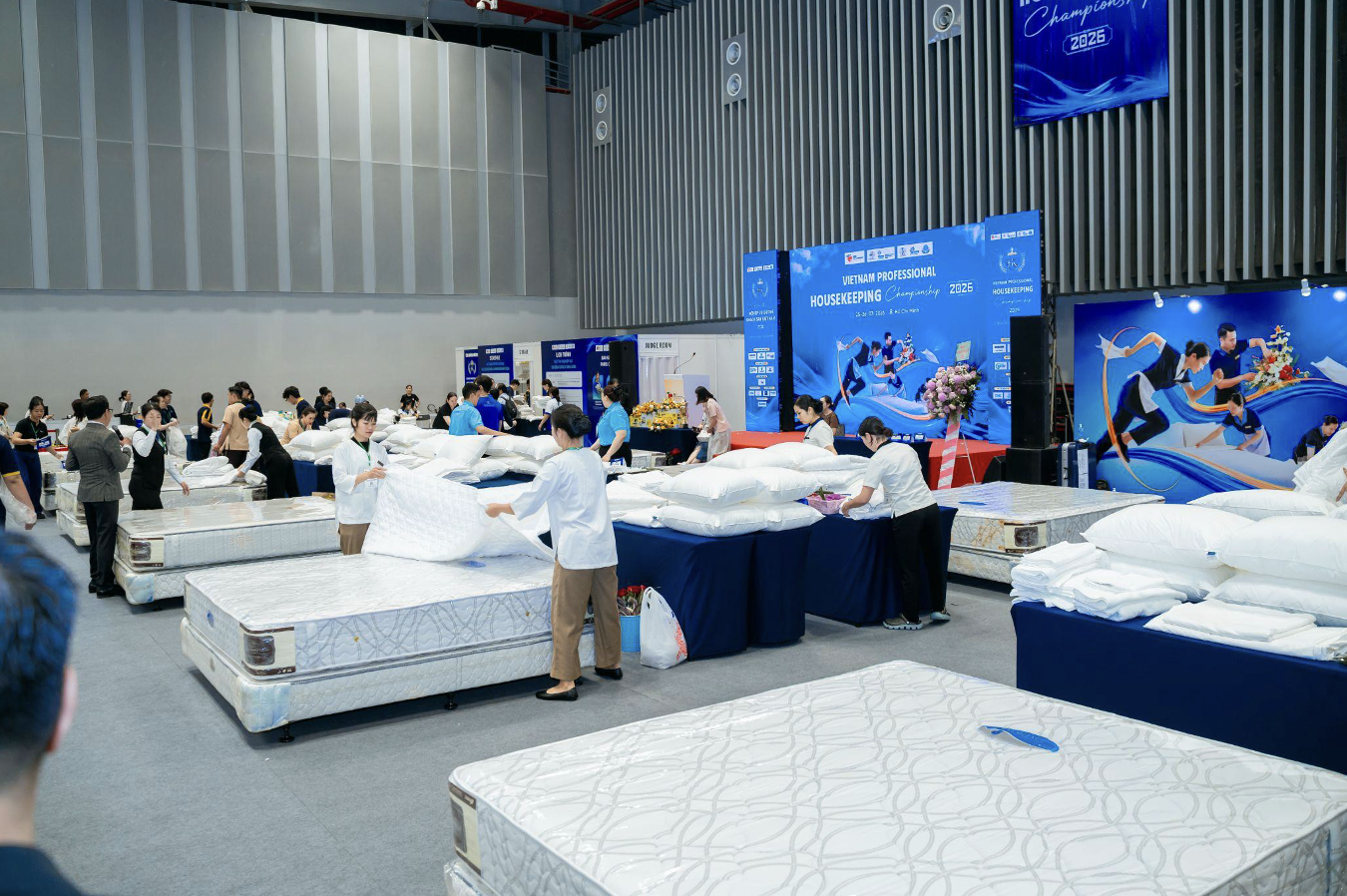 TP. Hồ Chí Minh – Sáng ngày 25/3/2026, trong khuôn khổ Triển lãm Quốc tế Food & Hospitality Vietnam lần thứ 13, sức nóng tại Trung tâm Hội chợ & Triển lãm Sài Gòn (SECC) không chỉ đến từ các gian hàng trưng bày mà còn bùng nổ tại khu vực diễn ra Vòng Chung kết "Hội thi Nghiệp vụ Buồng Khách sạn Việt Nam năm 2026". Sự kiện quy tụ những đôi bàn tay vàng của ngành lưu trú, đánh dấu một bước chuyển mình mạnh mẽ trong việc chuẩn hóa và nâng tầm dịch vụ khách sạn nước nhà.