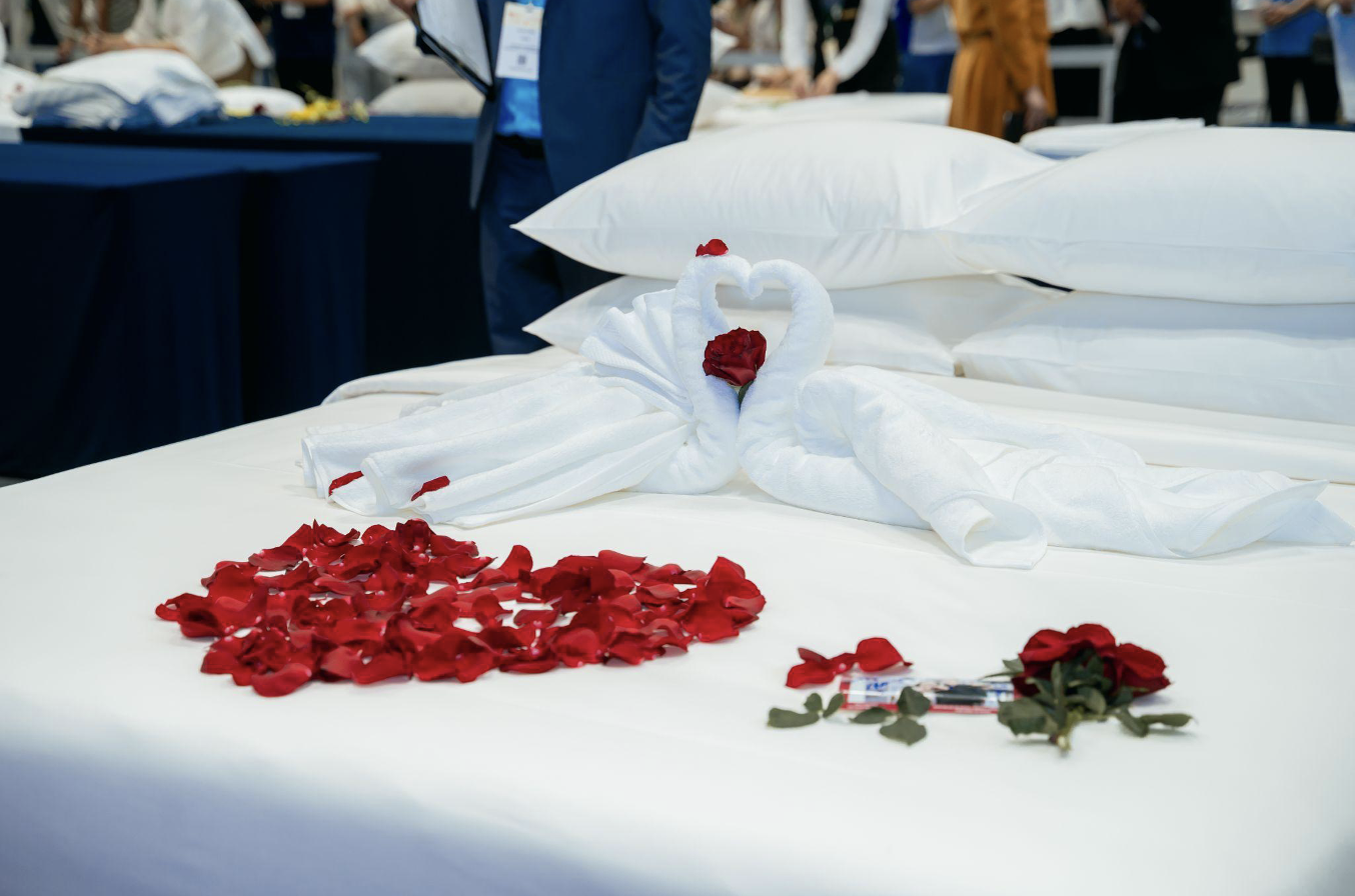 Với những bàn tay tài hoa của các "nghệ nhân" Housekeeping - chiếc giường khách sạn vô tri bỗng chốc trở thành những tác phẩm nghệ thuật đặc sắc. Những chiếc giường được trải cân đều đẹp, với những góc ga giường phẳng phiu, cùng các cặp gối ngay ngắn hay cách điệu bên cạnh những chú thiên nga gấp bằng khăn tắm mềm mại, những cánh hoa hồng được rải với bố cục đầy tính toán, phô diễn trọn vẹn con mắt thẩm mỹ tinh tế và đẳng cấp dịch vụ 5 sao.